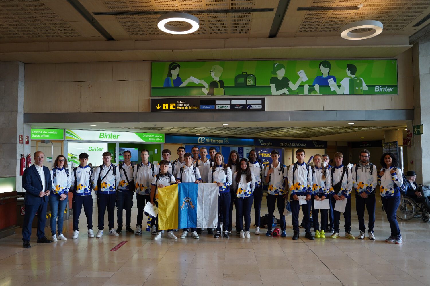 FOTO. Parte del equipo canario antes de salir de Tenerife Norte. (1)