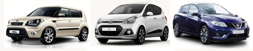 vehículos Hyundai i10, Kia Soul, Nissan